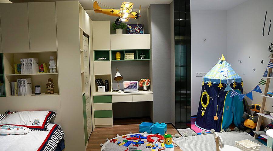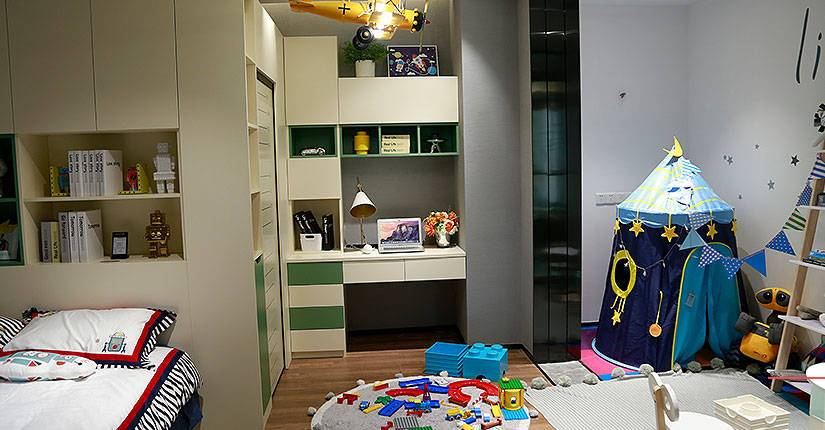 灵动空间设计,隐形子母床方便照顾小孩,隐形衣帽间不仅可以收纳衣物,还可以方便儿童游戏,娱乐区、休息区、学习区相结合,实用又方便。
