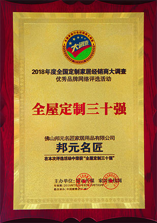 国内较早从事定制家居产业的企业之一。17年来,邦元名匠凭借强大的品牌影响力和完善的终端运营体系,已建立了品牌专卖店达600家,并创造了终端销量每年持续保持60%增长的行业奇迹。如今,邦元名匠已经成为中国家居行业专注“小空间”的代表性品牌,并继续在有限的空间里,为中国家庭创造着更多可能。