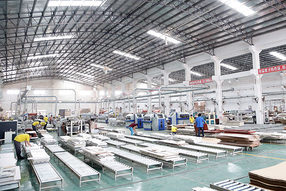 强大的生产实力是邦元名匠制胜终端的基础,工厂占地面积达57000㎡,拥有“6+1”国际顶级生产设备、智能信息化生产线和5星后台保障支持,可以大大保障产能需求。为进一步保障生产效率和产品质量,邦元名匠斥巨资引进德国豪迈全自动智能设备,并与自主研发的第四代设计软件无缝对接,真正实现了产品全自动生产,产品品质零误差,可将生产周期缩短10天,开辟了定制行业快速交付的新链路。