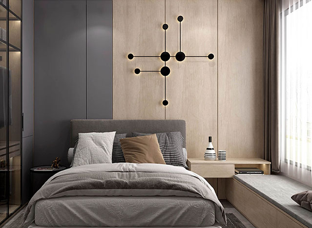 三口之家人生阶段,整体风格温馨,有规律循环造型,定制功能户型要求高。