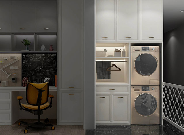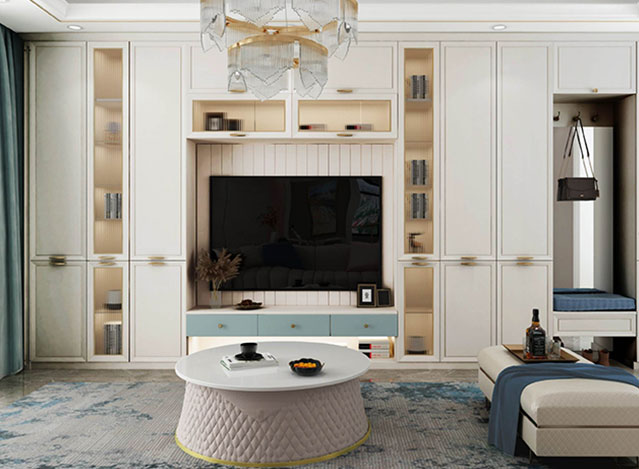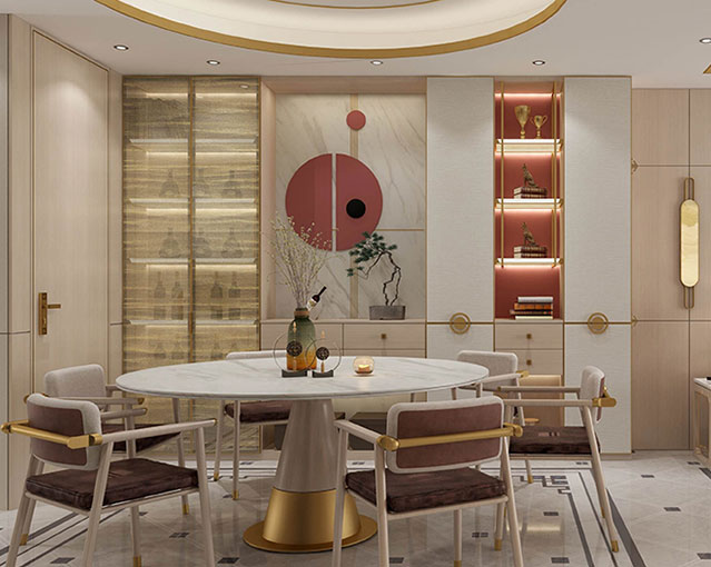 中式风格的极致,是简其形,得其神,不拘泥于传统的繁文缛节,浓缩传统文化的深层内涵,结合现代生活需求,创造出新的呈现方式。金粉世家系列,横平竖直的简约线条,饰以金属边框,点缀宫殿红色,搭配东方意蕴定制拉手,将现代中式风格做到极致。