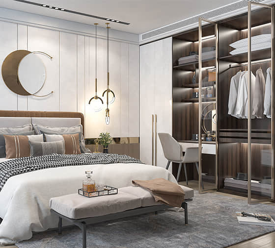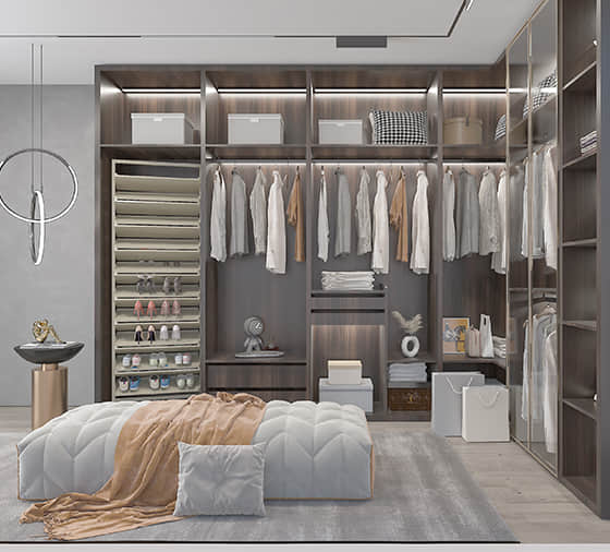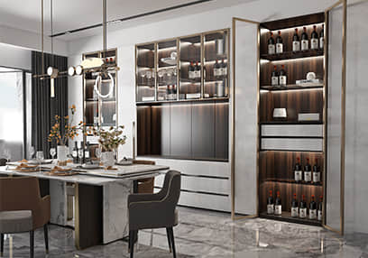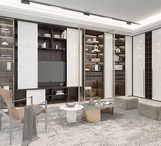 客来福在设计理念上不断推陈出新,研发出轻奢、极简、简欧、新中式、古典、新美式、田园等不同风格的定制家居产品。