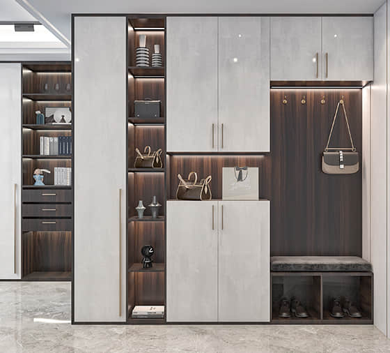 全屋定制,一站配齐。客来福针对用户家中的不同房型和空间尺寸,根据装修风格量身定制一套家居空间解决方案,包含衣柜、衣帽间、书柜、电视柜、酒柜、鞋柜、玄关柜、饰物柜、橱柜、隔断门、木门、窗帘壁布、沙发软床等产品。形成了以全屋定制为主导,根据客户需求定制其它家具配套产品的经营方针。客来福将继续以“全屋健康定制”为发展方向,秉承“客户是天,产品是命”的宗旨,以“创造幸福·传递幸福·分享幸福”的理念,为更多的家庭提供健康、舒适、时尚的家居空间解决方案,在可持续性发展的道路上再创辉煌!
